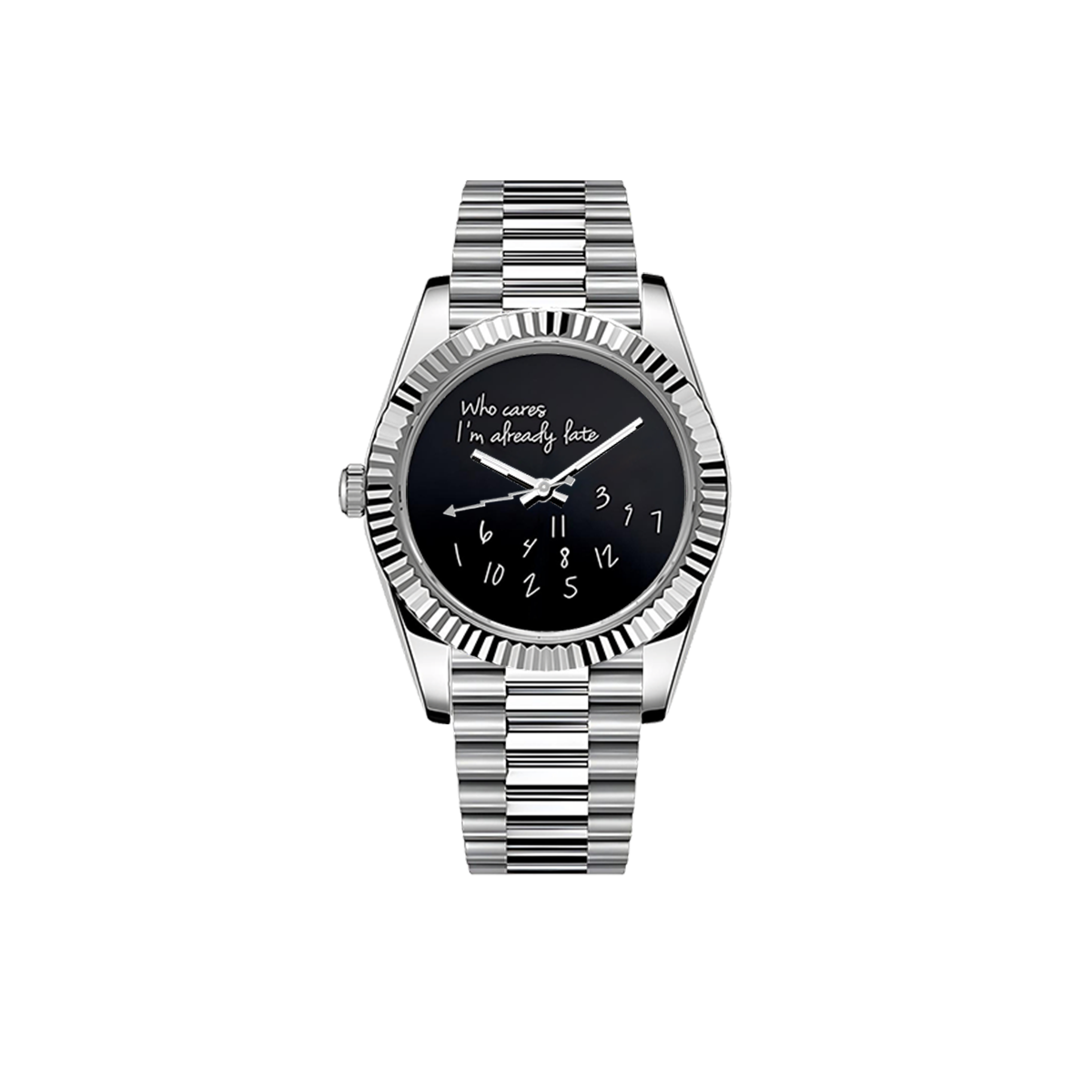 Inspired by the iconic Who Cares I'm Already Late design and featuring the prestigious Seiko NH35 automatic movement, we present the Lefty or destro version of the Datejust. This 36 / 39 mm high-end quality watch combines excellence with accessibility in the perfect alliance.